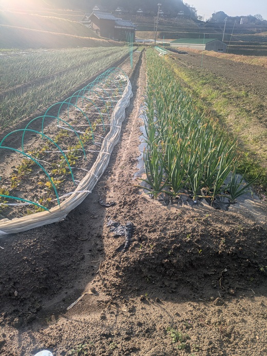 ↓は、人参です。その向こうには万願寺とうがらしを約70株定植済みです。