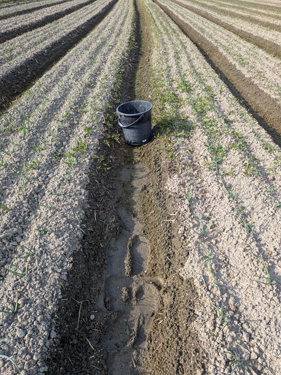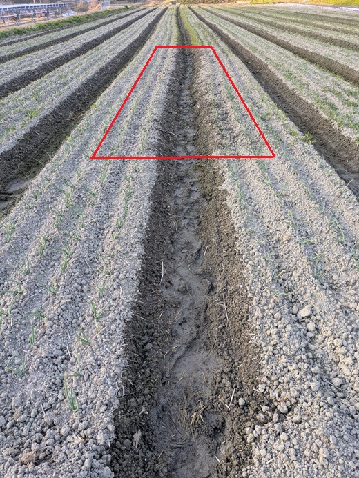 水谷(すいだに)を整え、畝(うね)の側面を耕すことで玉ねぎの苗根に空気を入れてあげます。