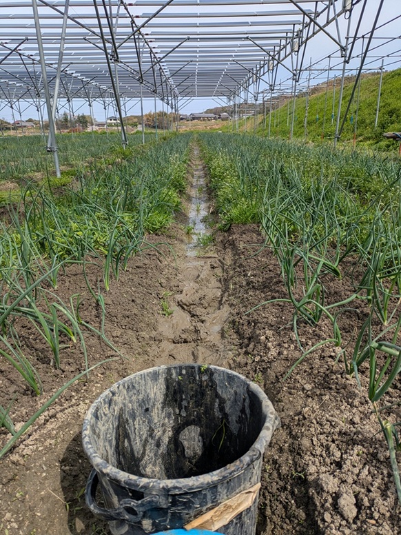 明日と明後日が雨予報なので、それまでに玉ねぎの消毒をしたり肥料を入れたり、ハタカンや管理機作業をしたりと、玉ねぎにとって大切な作業が続いています。