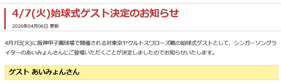 明日4/7(火)に、今季初の阪神タイガース応援に甲子園球場へ行ってきます。