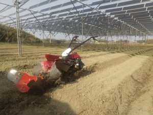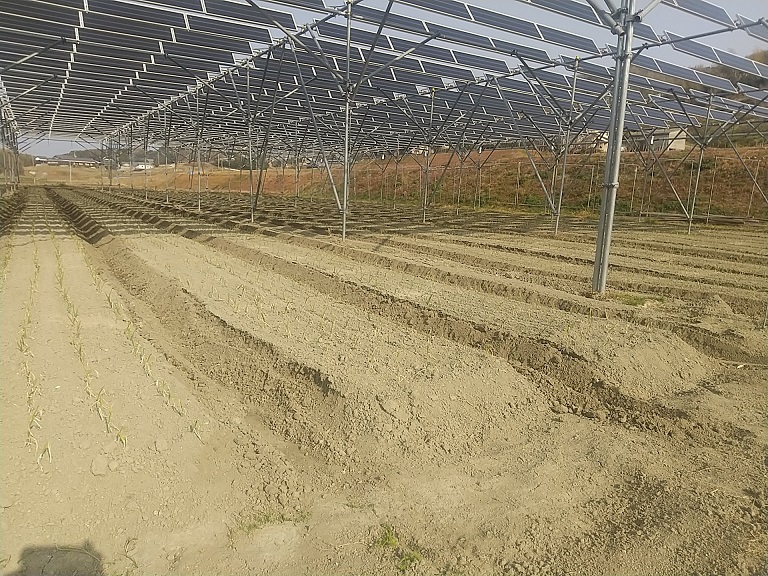 下の写真は、1/24(火)午後 すごい風が吹き始めたので、ソーラーパネルを水平にしました。