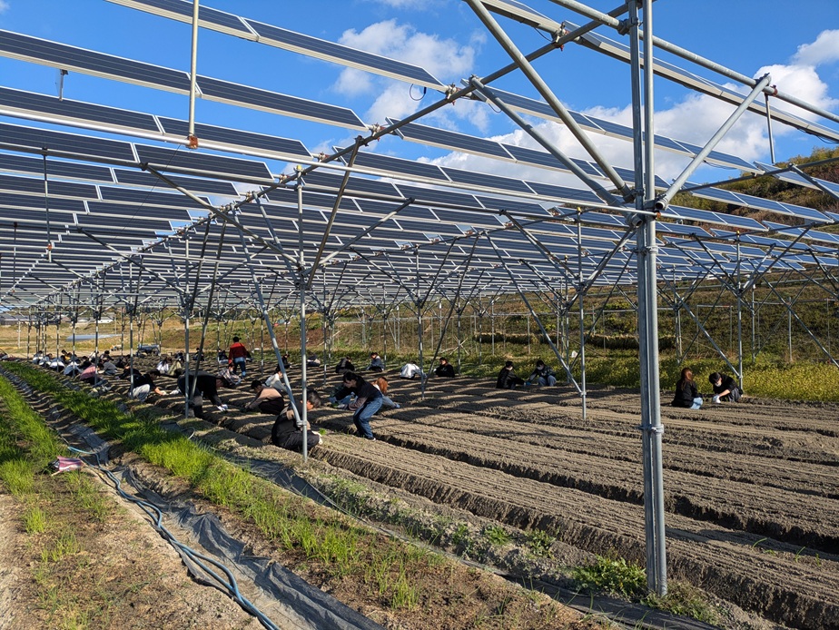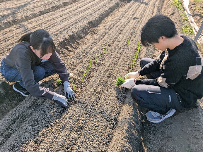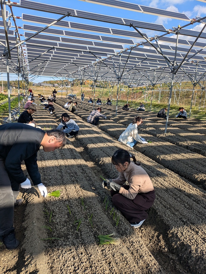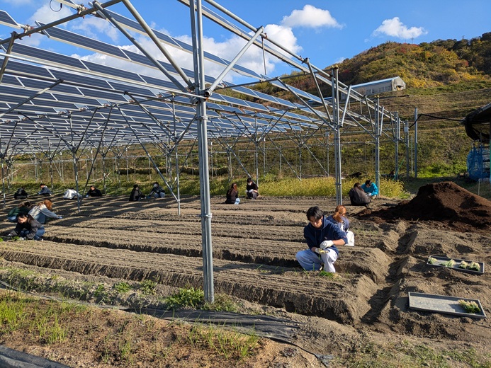 午後の部の学生さん達もソラ玉ちゃんの苗植えを行い、玉ねぎ定植機やトラクター運転・米山地区散策など、小春日和の晴天の中、農業体験が無事に終わりました。