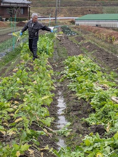 連日の雨で、畑がぬかるんでいて収穫は大変です。